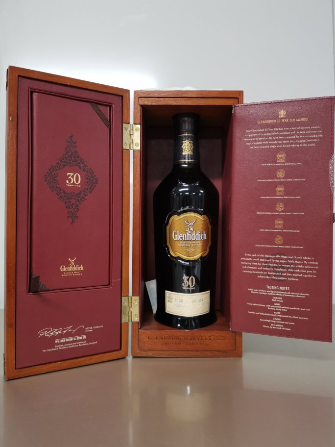 Glenfiddich 30 years old single malt scotch whisky (wooden case)